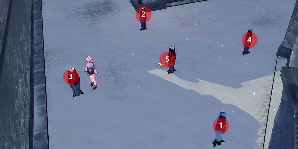 1、来到指定地点,按照1~5的顺序去攻击尖碑。