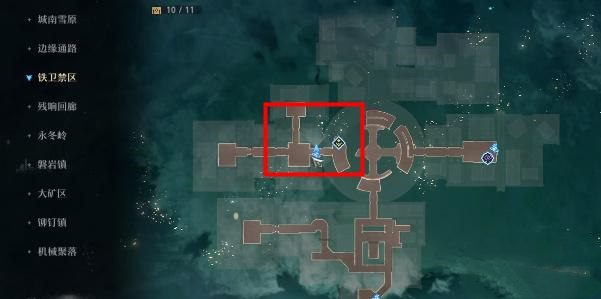 第一个宝箱在下图所示的位置,位于铁禁卫区左下角。