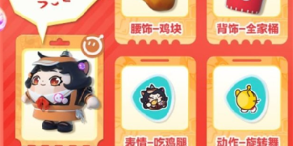 2、联动活动上线后会获得元气丸子皮肤、鸡块配饰、全家桶背饰等;