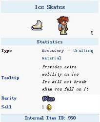 泰拉瑞亚溜冰鞋可以增强玩家在冰上的行走能力,并且冰面也不会碎,十分好用。那么泰拉瑞亚溜冰鞋如何获得呢?下面小编就向大家介绍下溜冰鞋的获取方法,还是得给自己搞一双溜冰鞋实用。