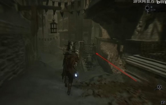 1、首先先来到栅栏这里,到达之后需穿过栅栏,然后需从二楼跳下去;