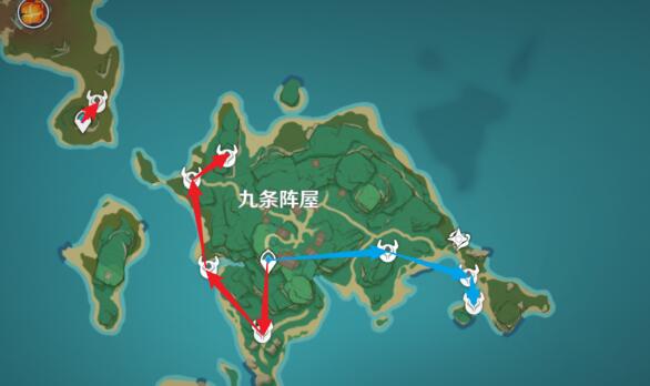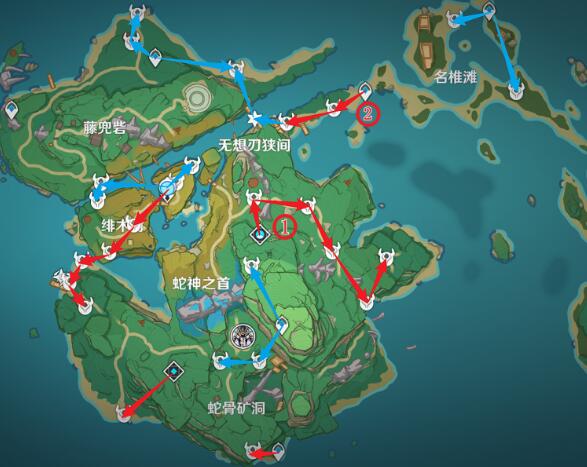 蓝色线路仅推荐有莫娜或神里的旅行者前往。