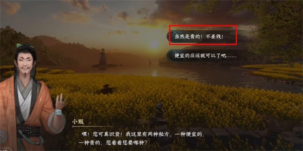 2、之后小贩会告诉玩家这个有止痒的效果,此时选框选择心动想买、当然是贵的!不差钱!;