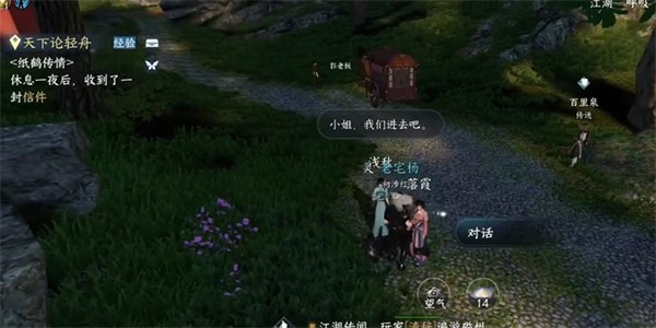 1、首先先来到杭州,到达之后找到NPC对话从中得知不进入寺中的原因;