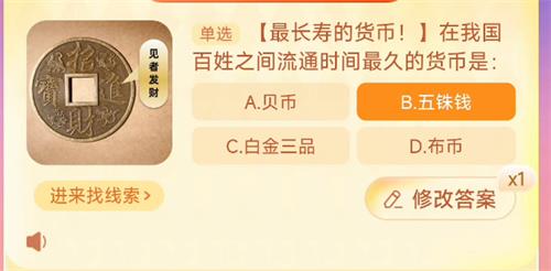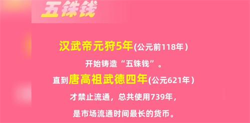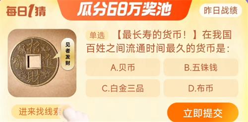 以上就是在我国百姓之间流通时间最久的货币是的答案一览,玩家可进入每日一猜在完成答题。