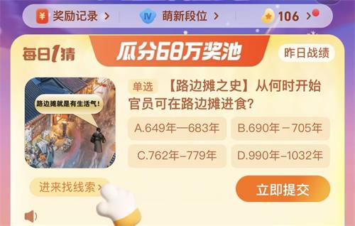 淘宝每日一猜11.24今日的问题是有关于路边摊进食的,许多的小伙伴是不是还不知道每日一猜11.24的答案是什么呢?下面小编就给大家带来了此问题的答案一览,感兴趣的玩家快来一起往下看看吧。
