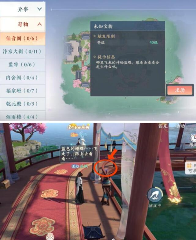 首先需要到达40等级,在仙音阁中进行抓取五只蓝蝶即可获得宝箱。