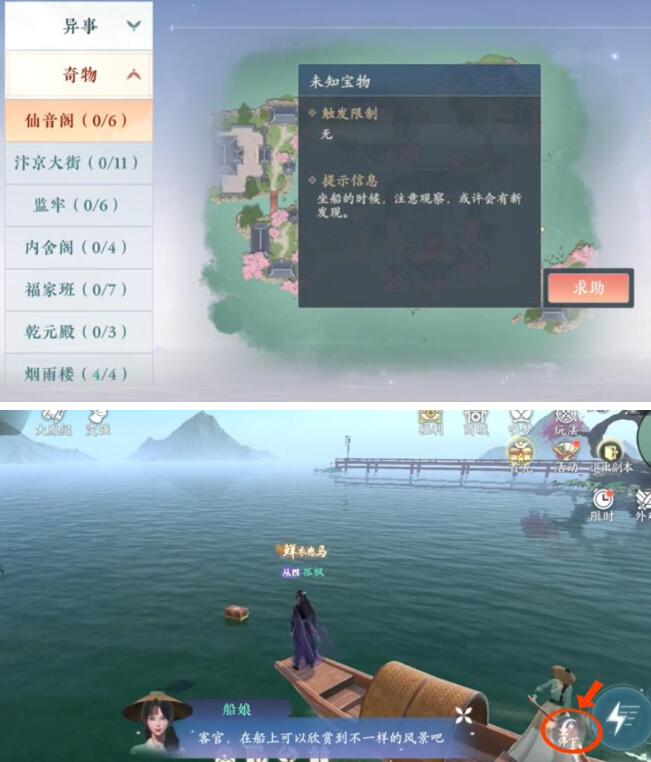 到达船娘位置点击选择坐船,坐船是看见宝箱时即可点击停下活动宝箱。