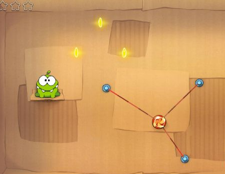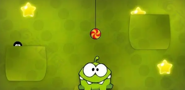 割绳子是一款益智类手机游戏,玩家需要将游戏中的绳子隔断,使绳子上的糖果放到角色的口中,若糖果丢失则算失败,将糖果放入欧罗姆嘴中的同时需要手机游戏中的星星以用来开启后续关卡。
