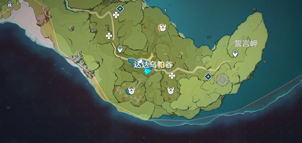 1、首先我们需要前往达达乌帕峡谷,在峡谷中找到剑冢的位置。