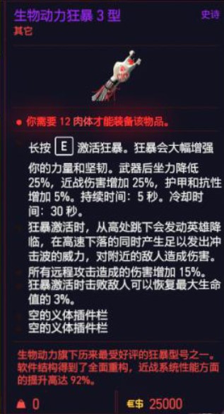 装备限制:需12级肉体才能装备该义体
