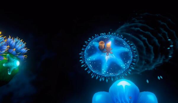 2、接着从藤蔓上跳到会移动的海星状平台上点燃蜡烛。