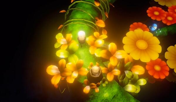 1、首先玩家进入游戏乘坐会移动的花来到藤蔓上点燃蜡烛。