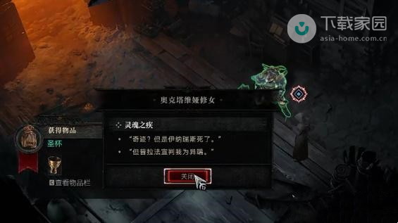 2、对话结束即可获得圣杯,接着玩家需要将圣杯放置在床旁边;