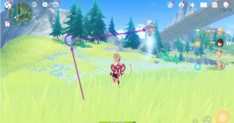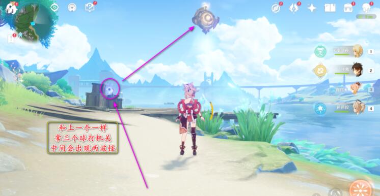 2、然后拾取能量块射击空中装置,并击败出现的魔物,重复三次。