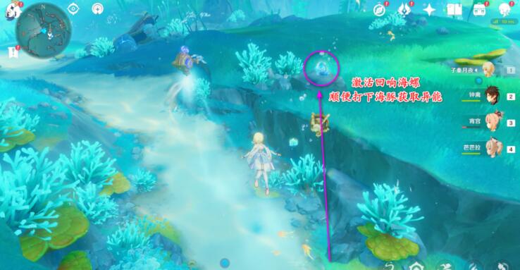 2、激活回响海螺,顺便打下海豚获取异能。