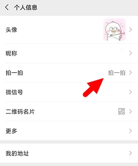 3、进入个人信息界面,在里面可以看到拍一拍选项,点击拍一拍选项。
