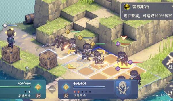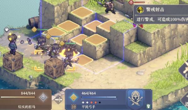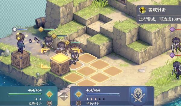 1、第一回合:在此回合玩家需要让平民弓手向前释放警戒射击;