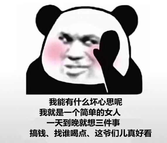我能有什么坏心思呢 我就是一个简单的女人 一天到晚就想三件事 搞钱 找谁喝点 这爷们儿帧好看