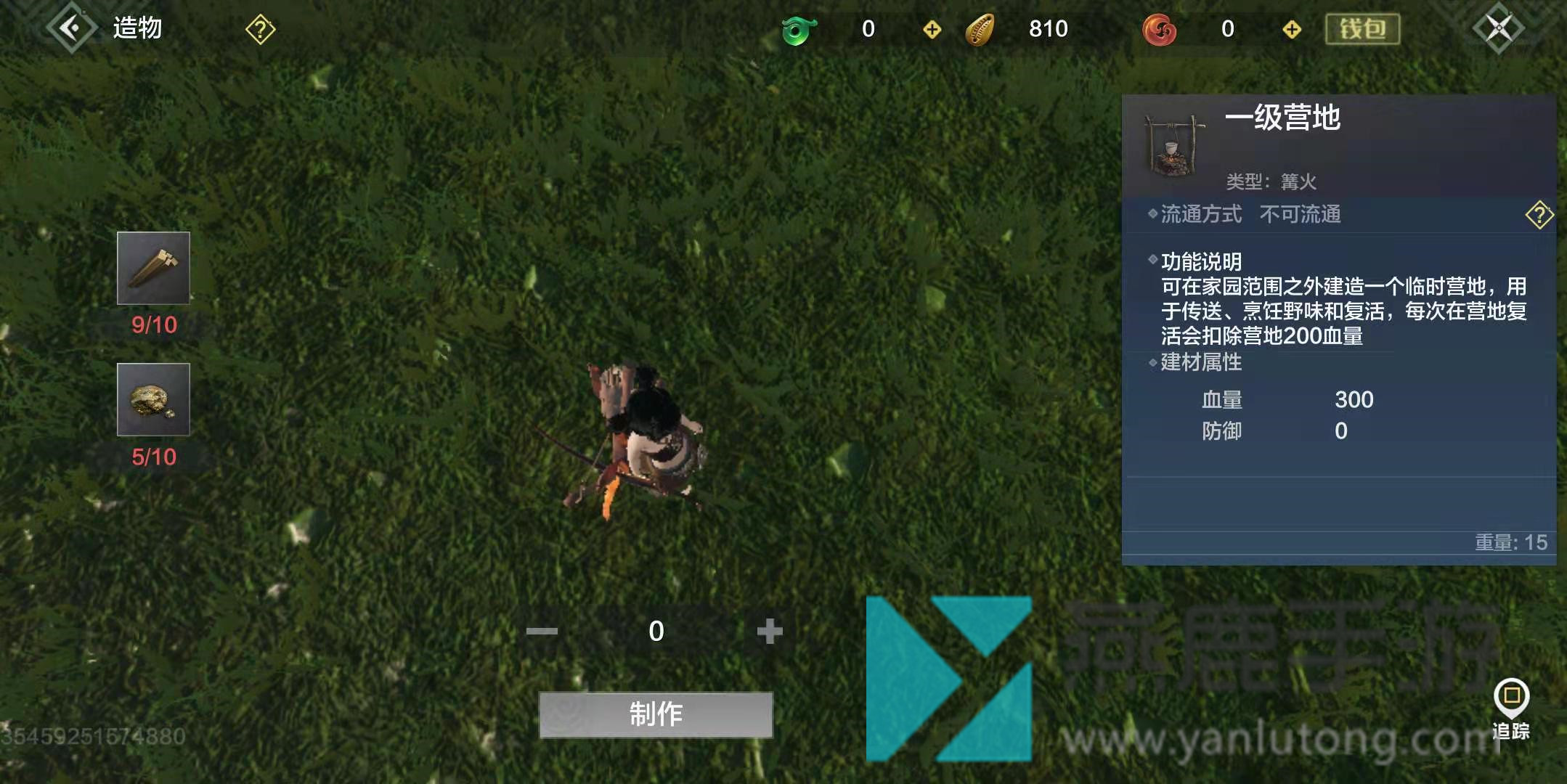 7、最后即可消耗10块石头和木头,制作合成一个一级营地。