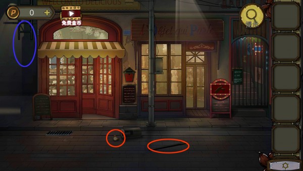 1、玩家先到街道上拿到闹钟和拐杖,然后用拐杖把楼梯拉下来。