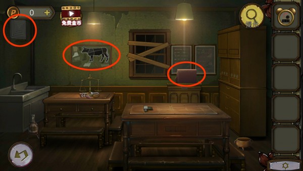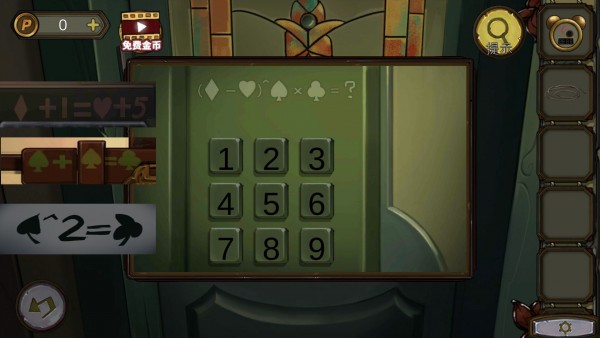 4、玩家根据下水道、古董店门和201猫眼里的3个等式,可以解开201的门锁,拿到卡片。