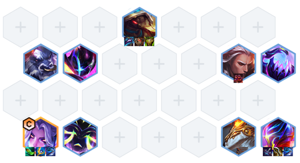 1、阵容组成:莫甘娜+拉莫斯+烬+派克+佛耶戈+奥瑞利安索尔+薇古丝+阿利斯塔。