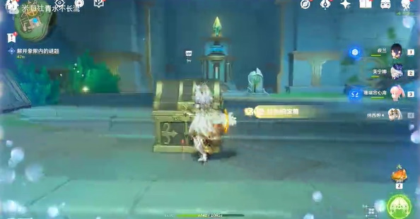 3、接着需来到下图位置,然后需将所有的装置连起来,连起来之后出去即可看见宝箱;