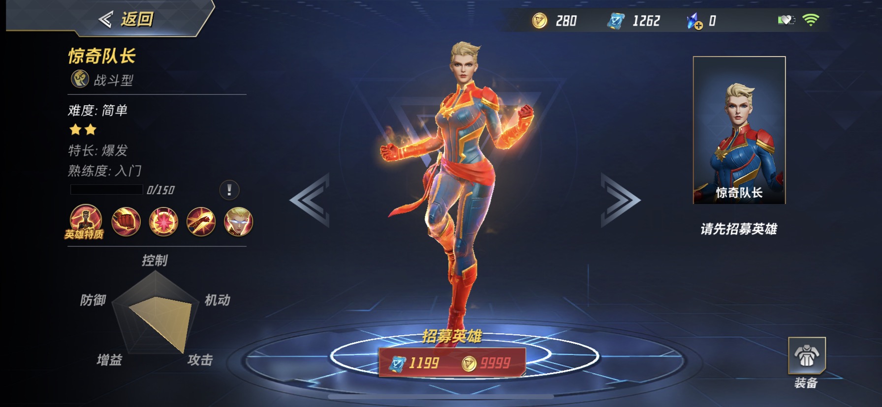5、惊奇队长:战斗技巧高,大招可以进入双星形态,提升自身攻击力,斩杀效果好;