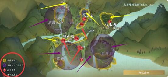 1、地图上标黄的位置是高资源点,但是机遇与风险并存可能会存在多只小队抢占一个高资源点的情况。