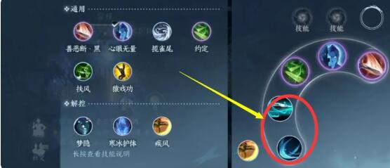 2、玩家使用的流派武器会自带两个技能然后玩家可以将开到的技能放入孔位即可使用。