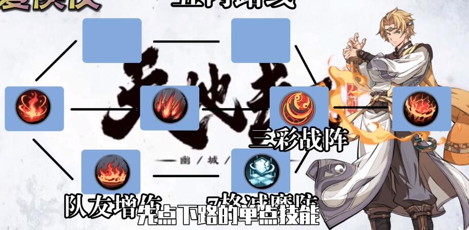 【千煌幻日阵】,这是夏侯仪的特殊战阵,提升范围技能伤害,就是收集难度大,但是伤害超高,适合后期用。