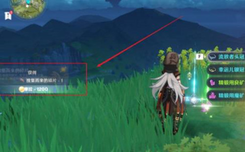 6、最后轻策庄山顶出现一个宝箱,开箱获得碎片、摩拉奖励。