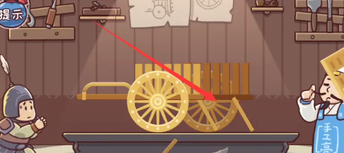 3、前面装上两根地上的长木棍,紧着右边的木板装在战车上。