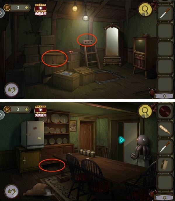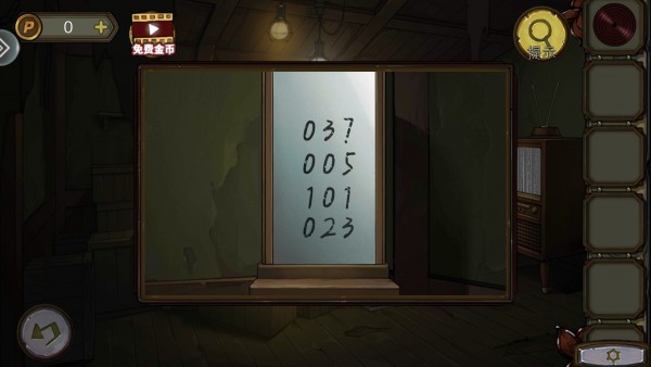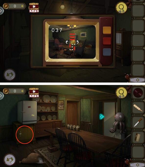 1、首先我们根据镜子上数字,调电视频道,4个频道可以得到4个数字,打开餐厅密码锁获得撬棍。