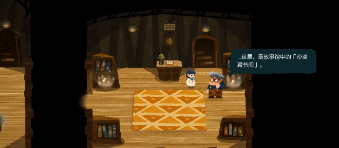 2、往右边走就会看到一个小房间,进入里面是图书馆,会有很多的书,在翻阅左边的书的时候就会有人出来,然后就可以跟着他进入藏书间;