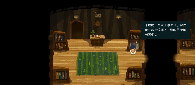 4、来到二楼的坐左边的房间的右上角的书柜这这里阅读会告诉我们地下二楼的房间会有鞋子,玩家需要前往;