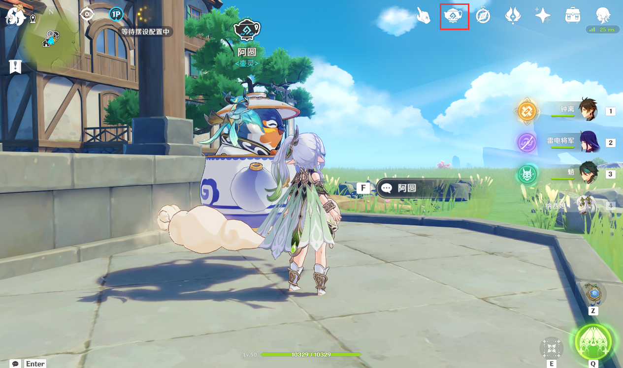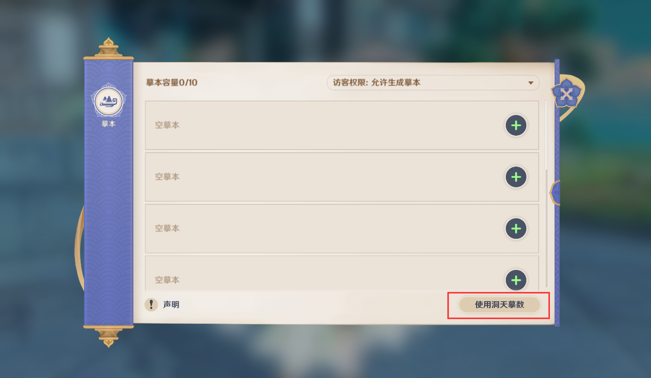 1、进入尘歌壶后,选择右上角的[洞天宝鉴]图标,PC端点击F6。