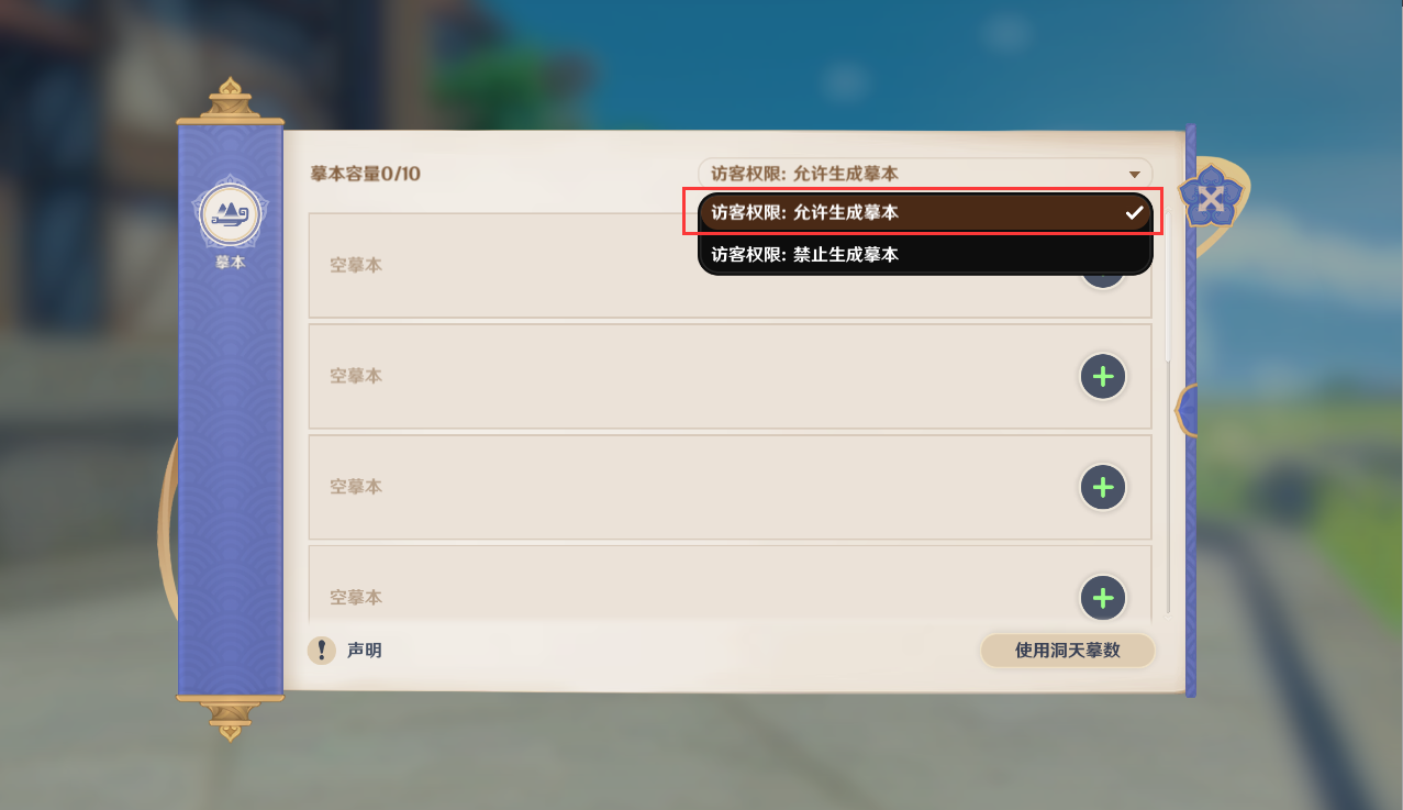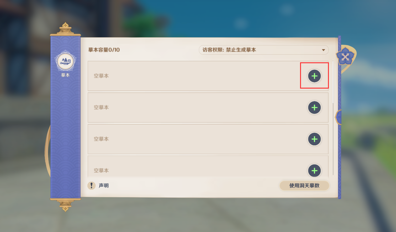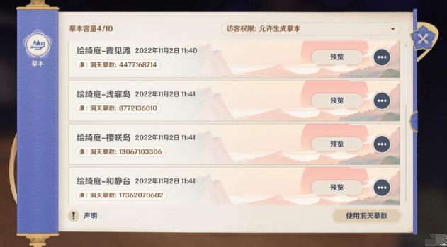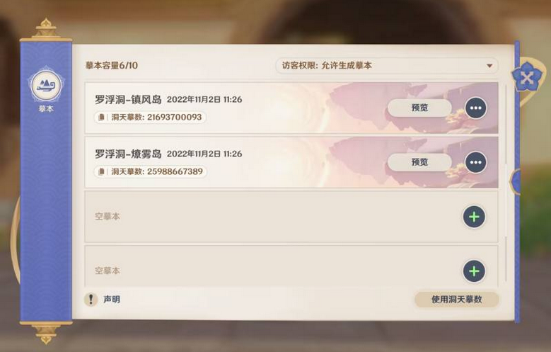4、选择想要生成的洞天区域,点击[生成摹本],就完成摹本的生成了。