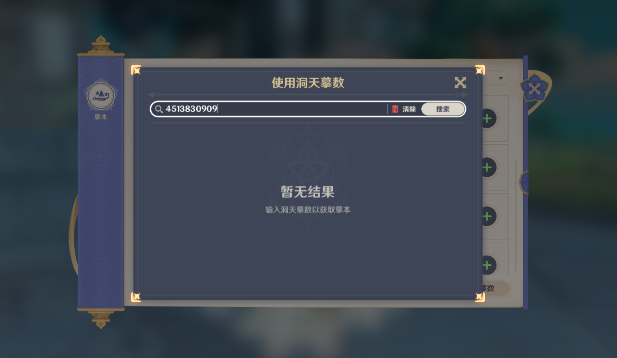 2、将对应的洞天摹数复制到搜索框中。点击搜索。