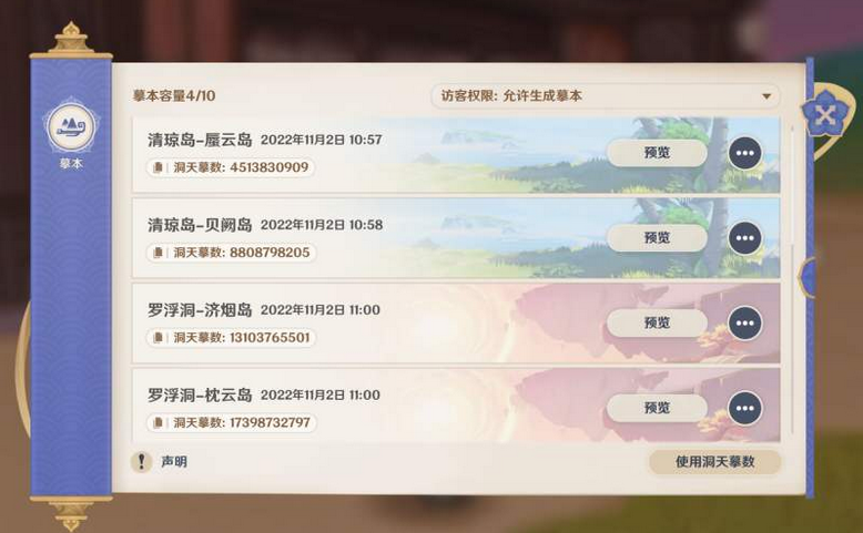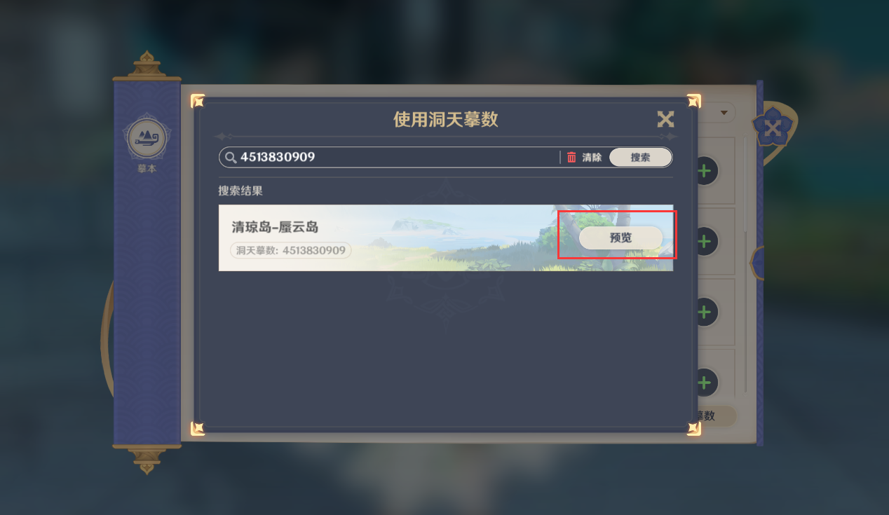 3、可以看到对应的洞天会出现,可以点击预览。