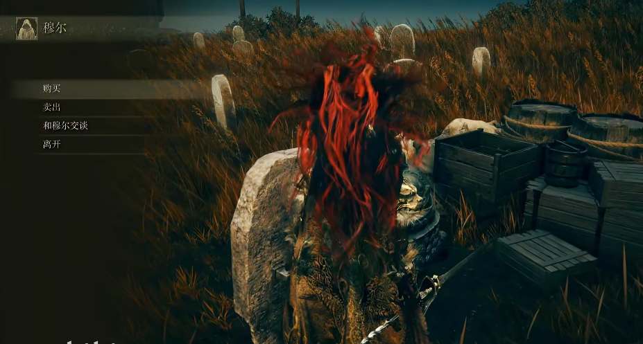 1、任务触发地点:墓地平原十字架旁跟商人穆尔对话,至少购买一个商品后可以继续进行交谈。