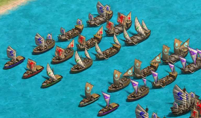3、喷火船的黄金需求比箭船要多一些,封建海战需要每个码头配2人挖金,城堡时代则需要配3人。