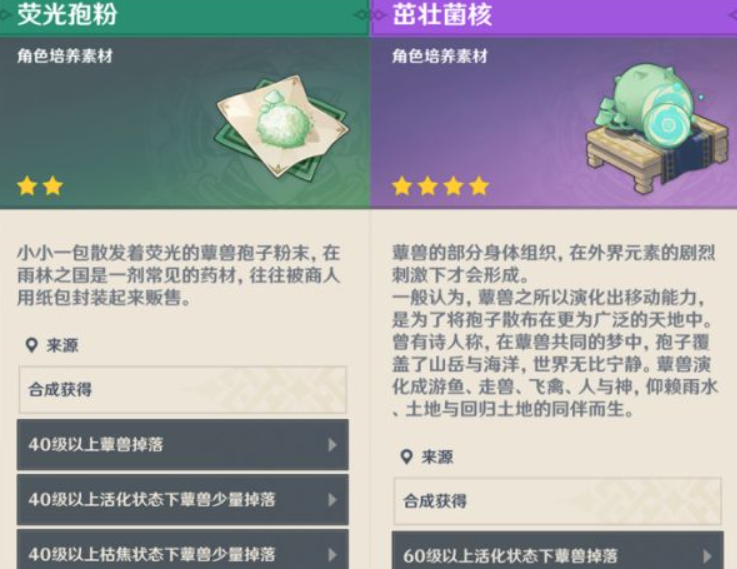 5、蕈兽孢子是草神天赋突破的材料,并不是休眠菌核。