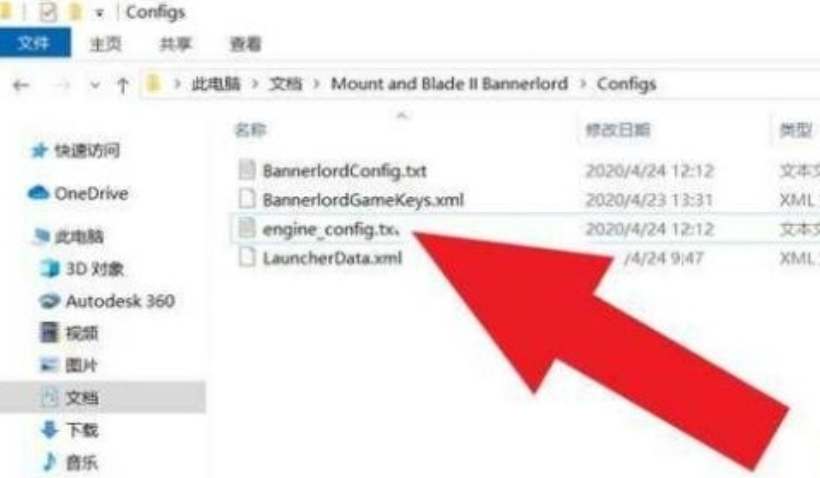 在游戏的安装路径中找到以下文件:C:Users/用户/Documents/Mount and Blade II Bannerlord/Configsengine_config