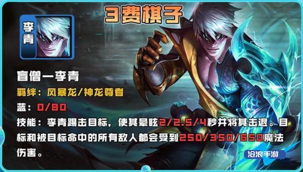 讲解:技能为峡谷的r技能。与s4的天神瞎子相同,但不能踢出棋盘,用来打控制,针对很肉的前排。