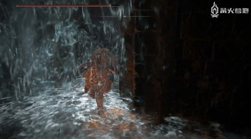 3、穿过瀑布后继续往里走,在隧道深处可以找到一个棺材,跟棺材互动会触发一段剧情,剧情后将开启赐福「地底积水处」