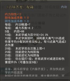 天龙寺的门派传家宝是暗金品质的《六脉齐发》秘籍,看到【暗金】,是不是已经有大侠已经心动不已了呢?装备该秘籍进行战斗后,就能学会传说中的《六阳指》啦!