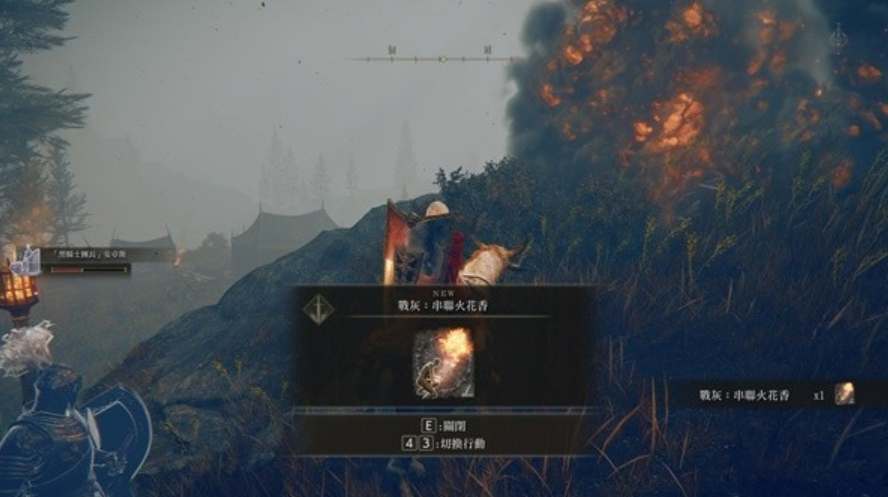前往谷底森林废弃教堂赐福,往左边走,在下图所示位置找到一具尸体,靠近调查即可获得癫火调香瓶。