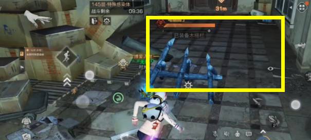 2、左转来到电锯园丁的房门前,用三个木栅栏堵路。